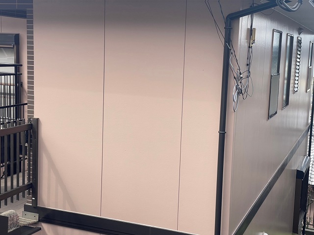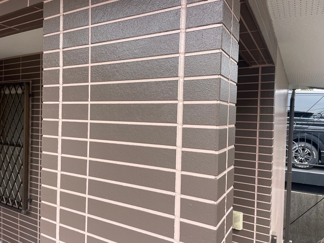 塗装を行い2年が経過しておりますが剥がれ、色褪せもなくキレイに保たれていました!コーキングの劣化もなく防水効果も持続しております!