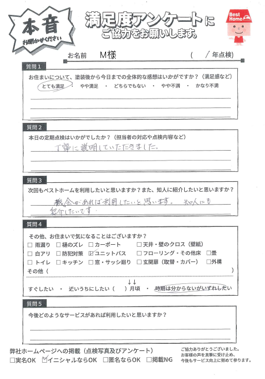 本日は下関市彦島本村町にて1年点検に伺い、美観は維持できているか、劣化箇所や補修が必要な箇所はないか確認しました!点検結果、お客様からの声をぜひご参考ください。