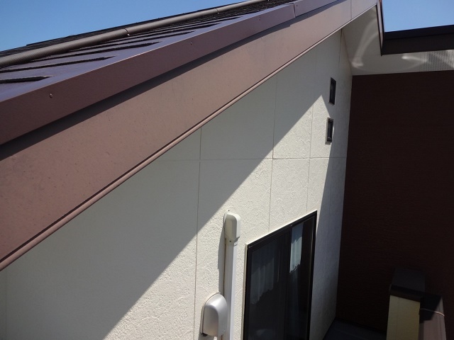 破風:屋根や外壁と比べると材質が違うため耐久年数は低いですが、塗装時のまま綺麗に保たれていました!剥がれもなく良好です!
