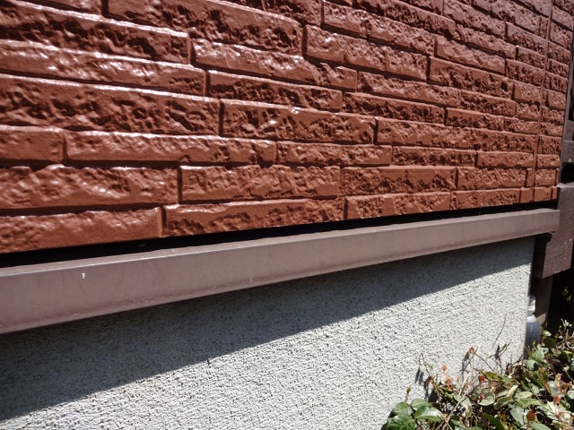 水切り:塗装時のままきれいに保たれていました!水切りを塗装することによって、雨水や土台の腐食、シロアリの発生を防ぐことができます。お住まいの大切な土台を塗装で守っています!