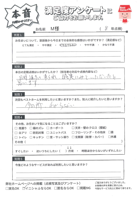 本日は八幡西区岩崎にて8年点検に伺い、美観は維持できているか、劣化箇所や補修が必要な箇所はないか確認しました!点検結果、お客様からの声をぜひご参考ください。