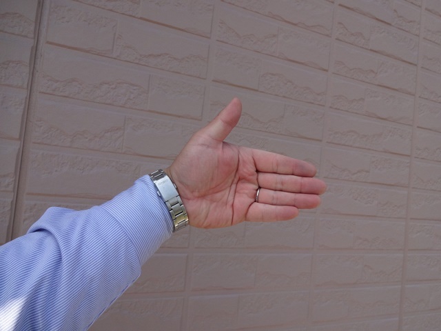 一部にヒビがありますが問題ありません。玄関面、ベランダ面にチョーキングの発生が見られますが、こちらも問題ありません。