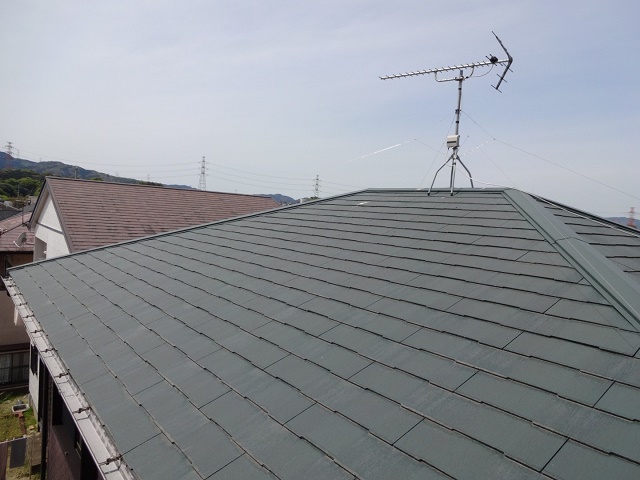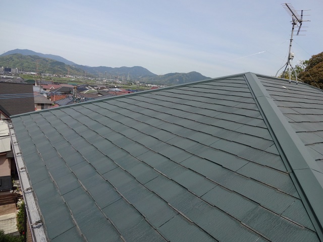 屋根は雨や紫外線からお住まいを守ってくれるので一番劣化が早い部位ですが、7年経過しても剥がれ、色褪せもなく塗装したての状態を維持していました!棟鉄板の浮きや捲れも見当たらなかったのでご安心ください!