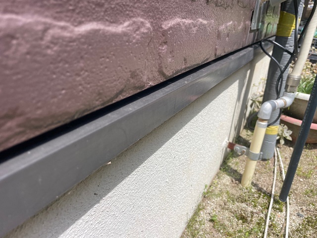 水切り:塗装時のままきれいに保たれていました!水切りを塗装することによって、雨水や土台の腐食、シロアリの発生を防ぐことができます。お住まいの大切な土台を塗装で守っています!
