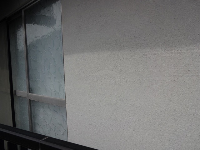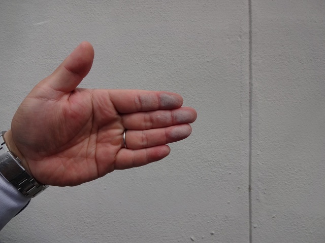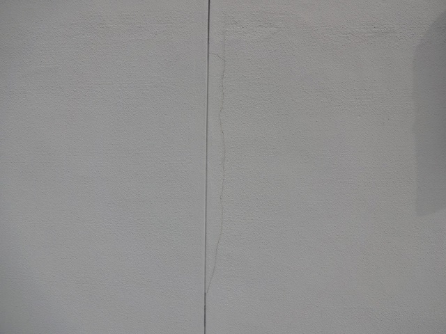 全体的にチョーキング(触ると手に白い粉がつくこと)が見られます。駐車場面に2箇所外壁にひび割れが見受けられます。