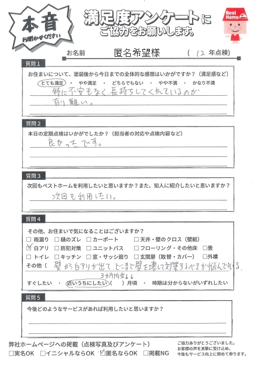 本日は門司区庄司町にて12年点検に伺い、美観は維持できているか、劣化箇所や補修が必要な箇所はないか確認しました!点検結果、お客様からの声をぜひご参考ください。