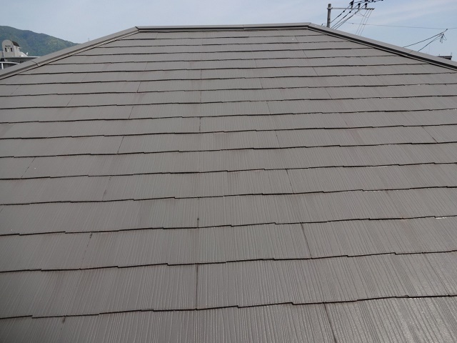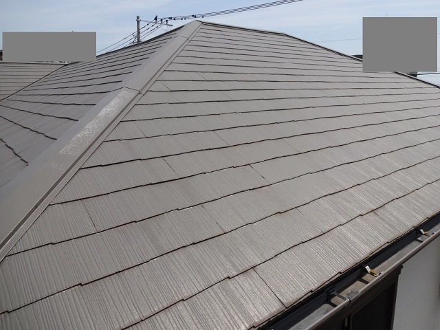 屋根は雨や紫外線からお住まいを守ってくれるので一番劣化が早い部位ですが、6年経過しても剥がれ、色褪せもなく塗装したての状態を維持していました!棟鉄板の浮きや捲れも見当たらなかったのでご安心ください!