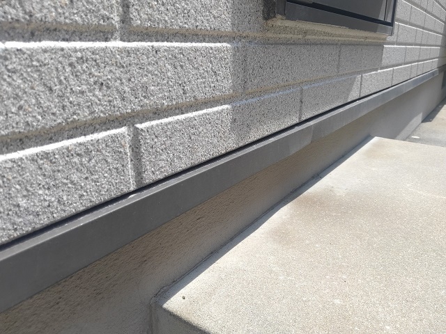 水切り:塗装時のままきれいに保たれていました!水切りを塗装することによって、雨水や土台の腐食、シロアリの発生を防ぐことができます。お住まいの大切な土台を塗装で守っています!