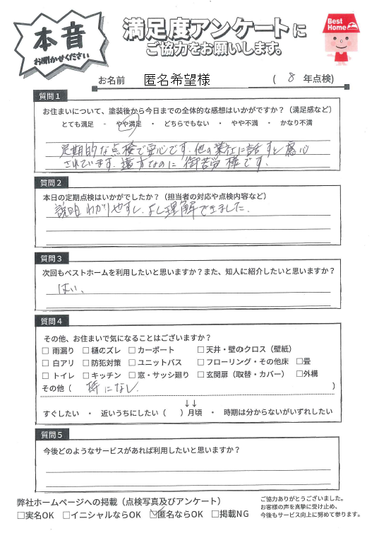 本日は糟屋郡篠栗町中央にて6年点検に伺い、美観は維持できているか、劣化箇所や補修が必要な箇所はないか確認しました!点検結果、お客様からの声をぜひご参考ください。