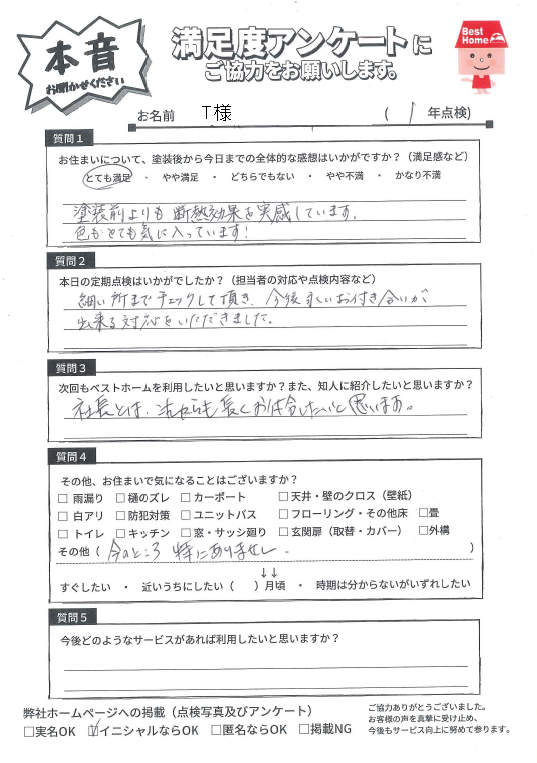 本日は八幡西区永犬丸にて1年点検に伺い、美観は維持できているか、劣化箇所や補修が必要な箇所はないか確認しました!点検結果、お客様からの声をぜひご参考ください。