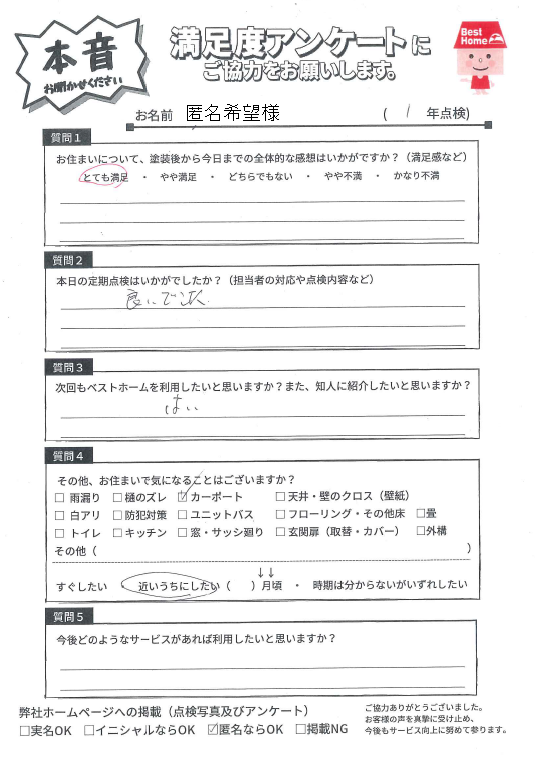 本日は小倉南区徳吉西にて1年点検に伺い、美観は維持できているか、劣化箇所や補修が必要な箇所はないか確認しました!点検結果、お客様からの声をぜひご参考ください。