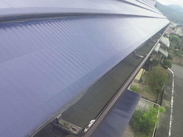 屋根は雨や紫外線からお住まいを守ってくれるので一番劣化が早い部位ですが、2年経過しても剥がれ、色褪せもなく塗装したての状態を維持していました!鉄錆もなく良好です!