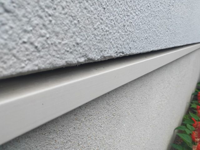 水切り:塗装時のままきれいに保たれていました!水切りを塗装することによって、雨水や土台の腐食、シロアリの発生を防ぐことができます。お住まいの大切な土台を塗装で守っています!