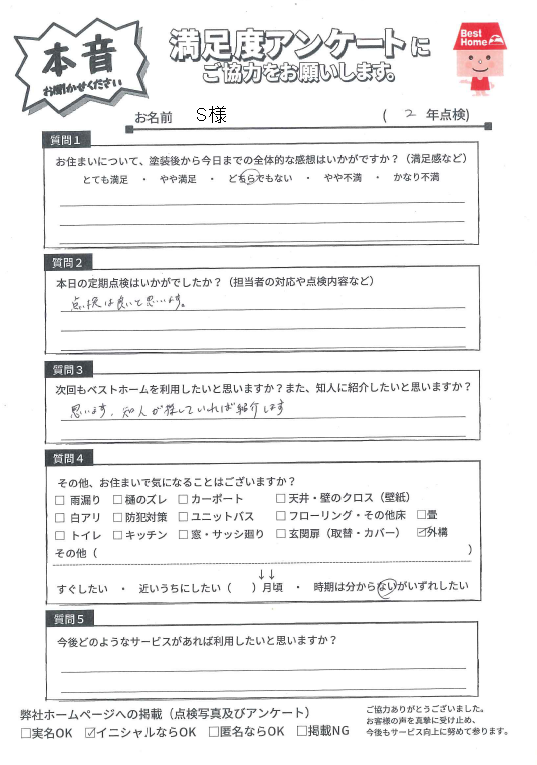 本日は小倉南区企救丘にて2年点検に伺い、美観は維持できているか、劣化箇所や補修が必要な箇所はないか確認しました!点検結果、お客様からの声をぜひご参考ください。