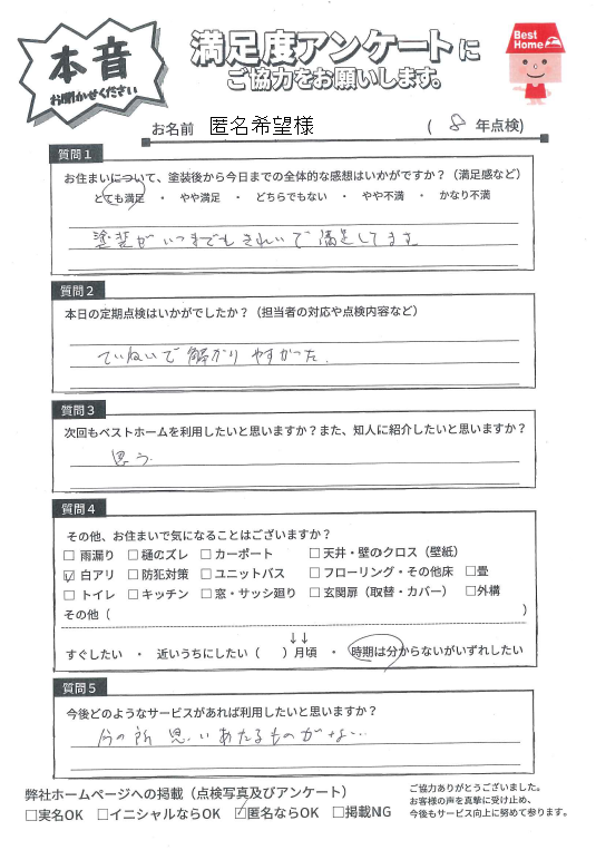 本日は行橋市元永にて8年点検に伺い、美観は維持できているか、劣化箇所や補修が必要な箇所はないか確認しました!点検結果、お客様からの声をぜひご参考ください。