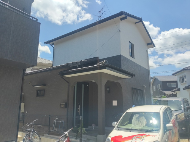 塗装を行い2年が経過しておりますが剥がれ、色褪せもなくキレイに保たれていました!コーキングの劣化もなく防水効果も持続しております!