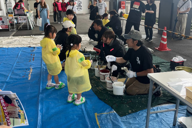 私たちにとっては2回目の出店。全19社が出展する中で、私たちは「子ども塗装体験」を実施しました。