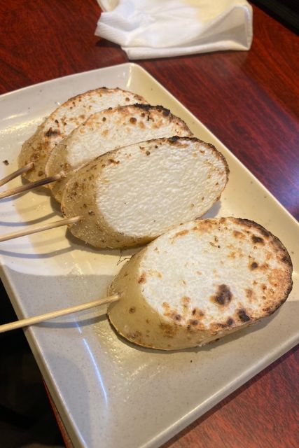 博多とりかわ大臣は、博多名物のぐるぐる鶏皮の焼き鳥屋さんですが、鶏皮以上にハマったのが、この山芋串!