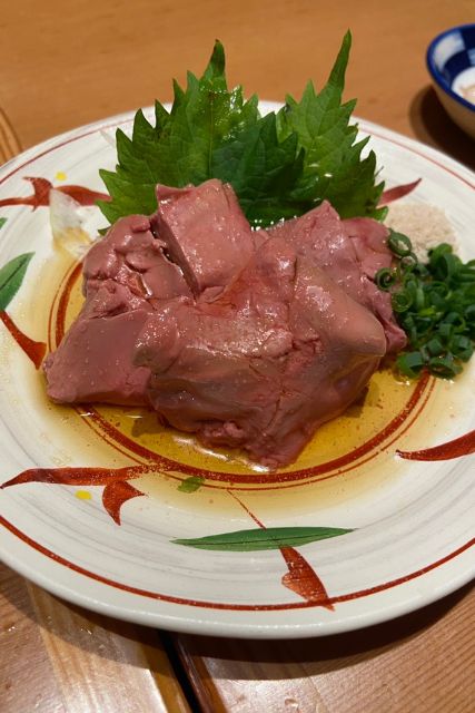 おつまみは、妻オススメの鶏レバー刺しと里芋の唐揚げと梅水晶。