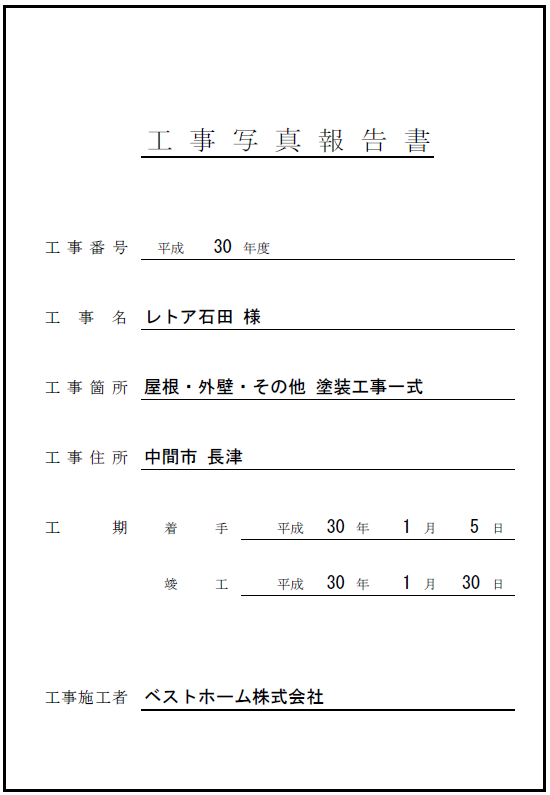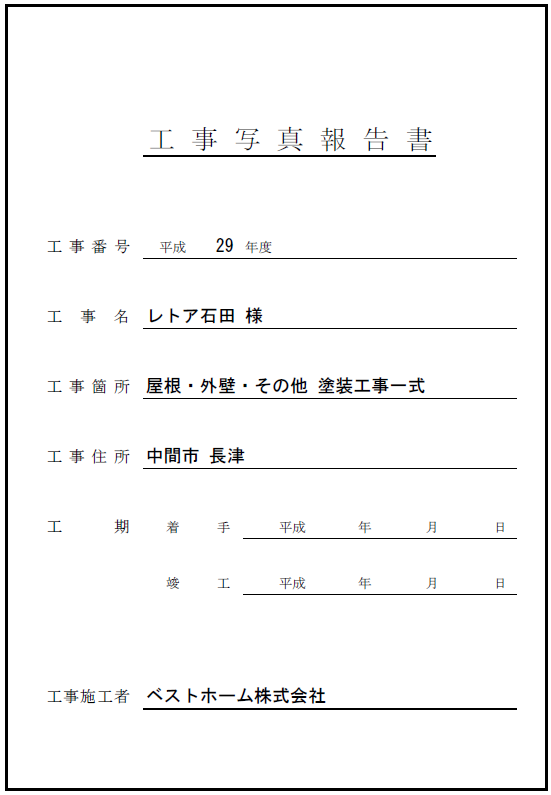| 施工箇所 | 屋根・外壁・破風板・鼻隠し・軒天・換気フード・雨樋・ 玄関ドア・鉄骨階段・ |