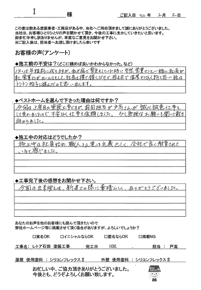 | 外壁塗装 | グラナートSP/長持ち期間20年 シリコンフレックスⅡ/長持ち期間10年 |
