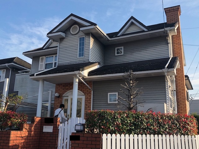 | 施工箇所 | 屋根・外壁・破風板・鼻隠し・軒天・小庇・コーナー板金・窓廻り板金 雨樋・その他配管・ダクトカバー・土台水切・玄関ドア・窓飾り木部 外構塀・ベランダ床・倉庫屋根・基礎 リフォーム工事:2Fバルコニー取付・1Fバルコニー取付・土間外構工事 |