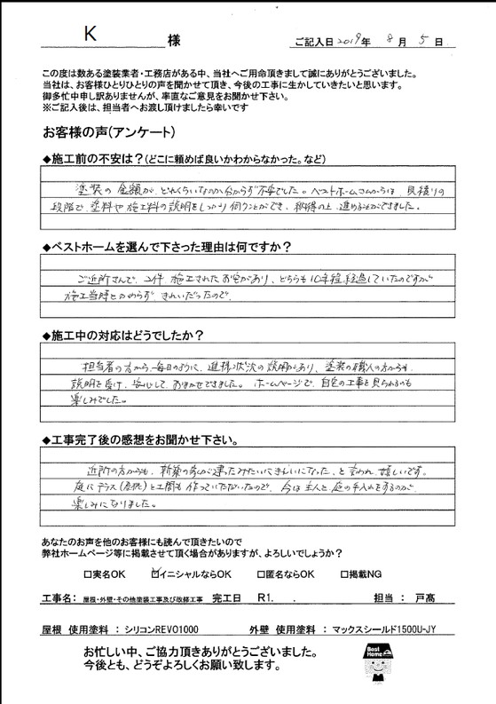 | 保証(ベストホーム) | 屋根3年 外壁3年 |