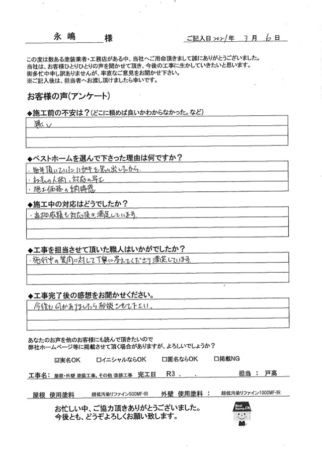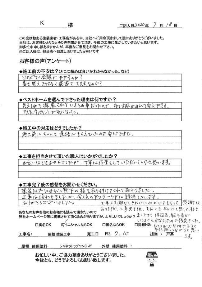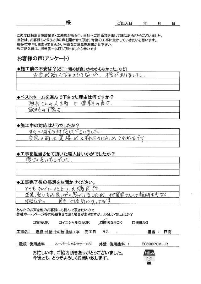 | 保証 (ベストホーム) | 屋根3年 外壁3年 |