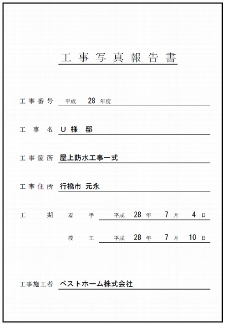 ▽行橋市元永 U様邸 〈屋上防水工事〉