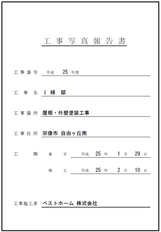| 施工箇所 | 屋根・外壁・破風板・鼻隠し・軒天・帯・雨樋・雨戸・ 水切り・玄関ドア・ベランダ床 |