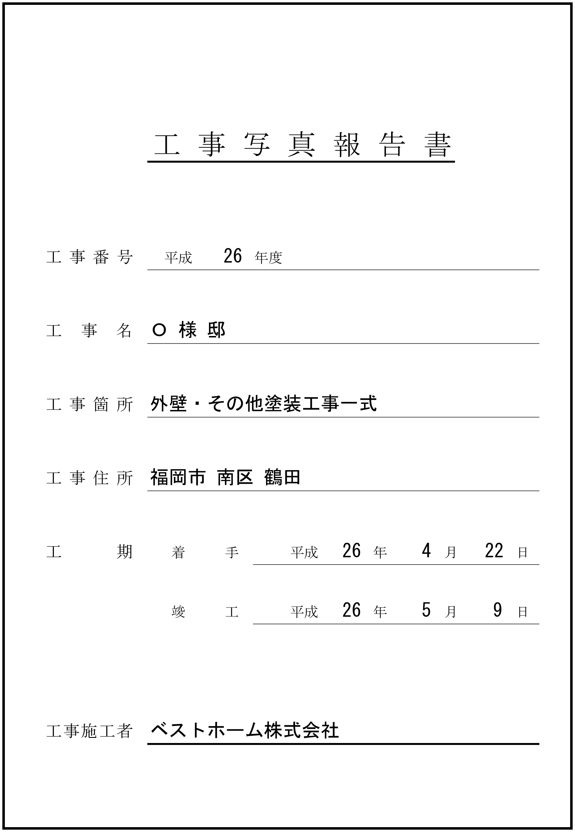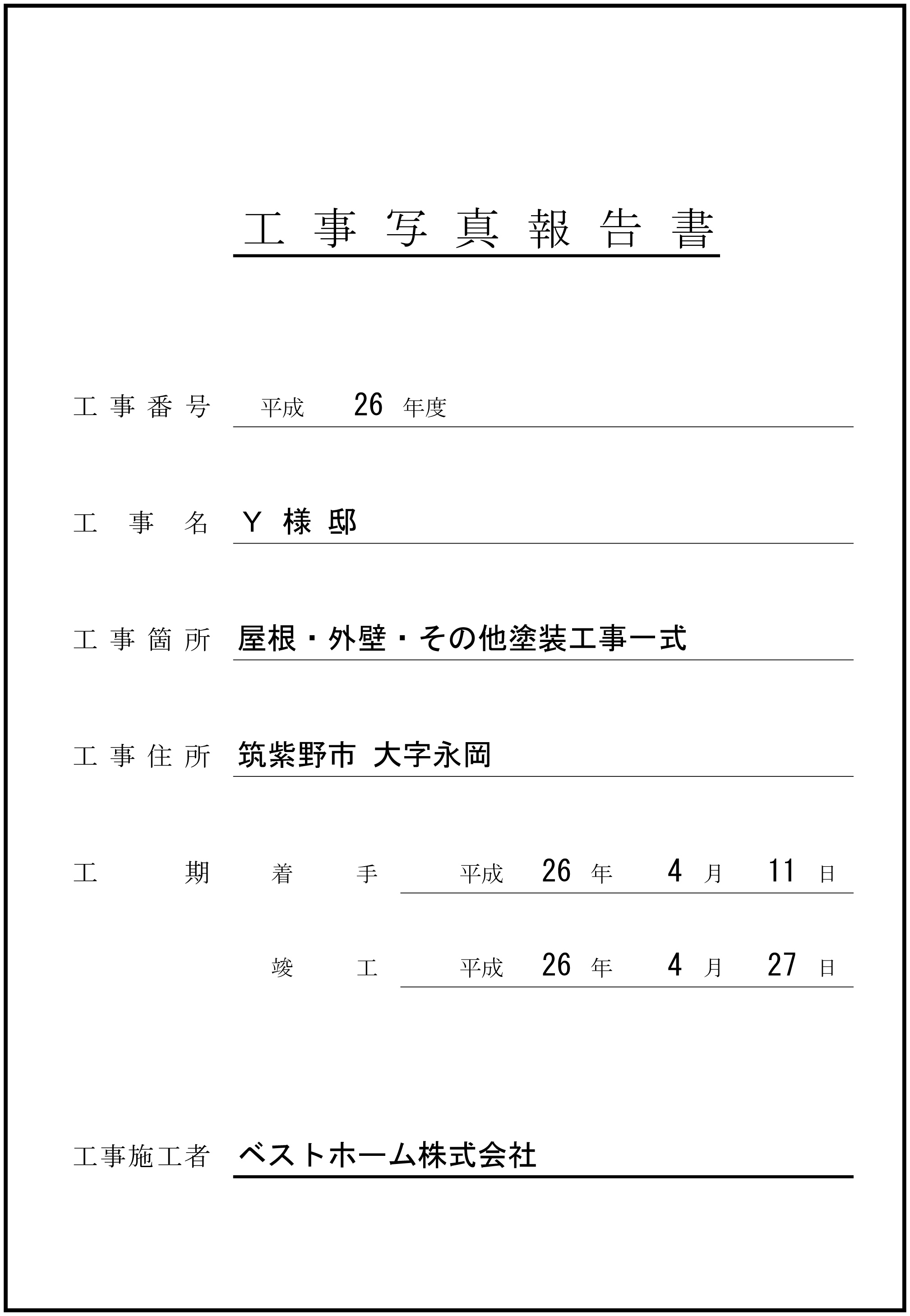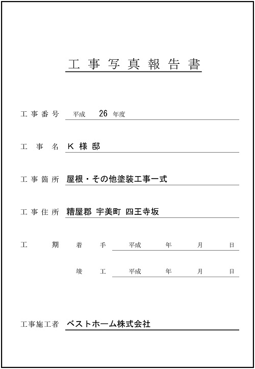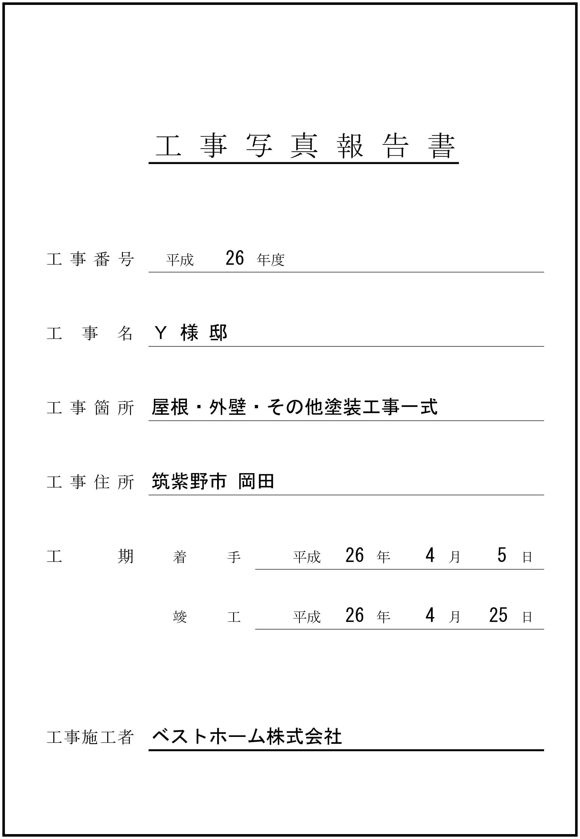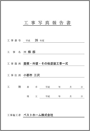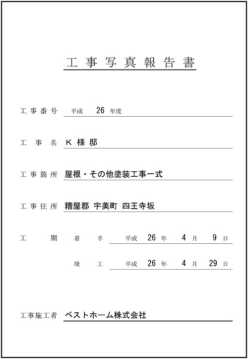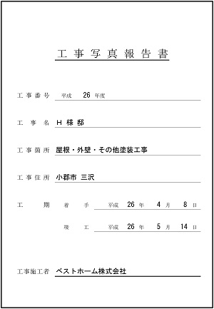 | 施工箇所 | 屋根・外壁・破風板・鼻隠し・軒天・小庇・帯・ 換気フード・雨樋・雨戸・玄関ドア |