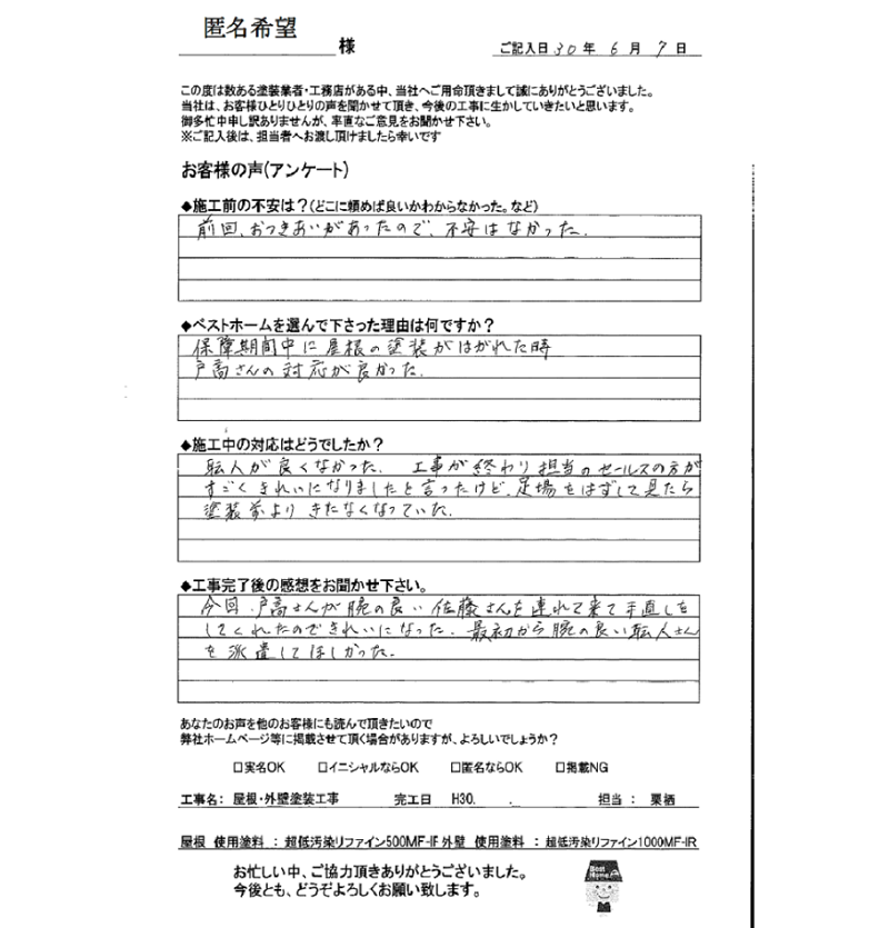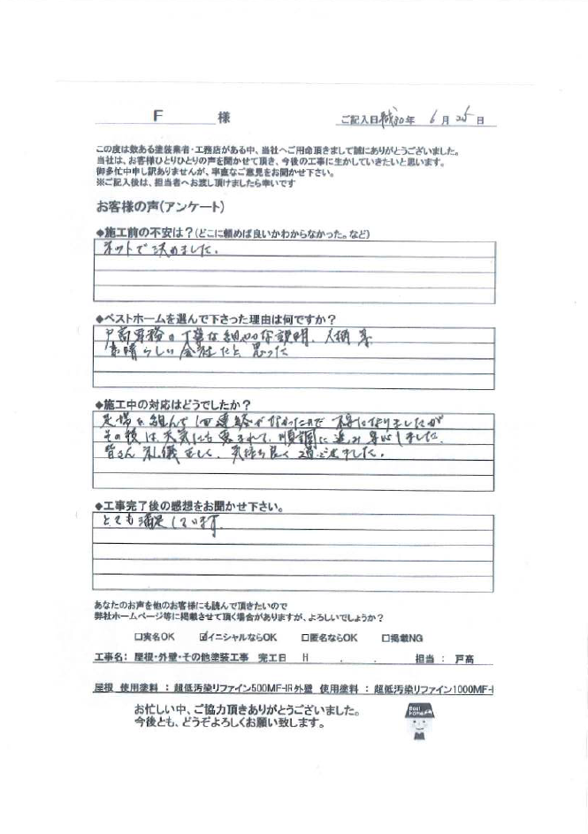 | 担当 | 営業:戸髙 / 現場管理:戸髙太 / 職人:吉岡 |