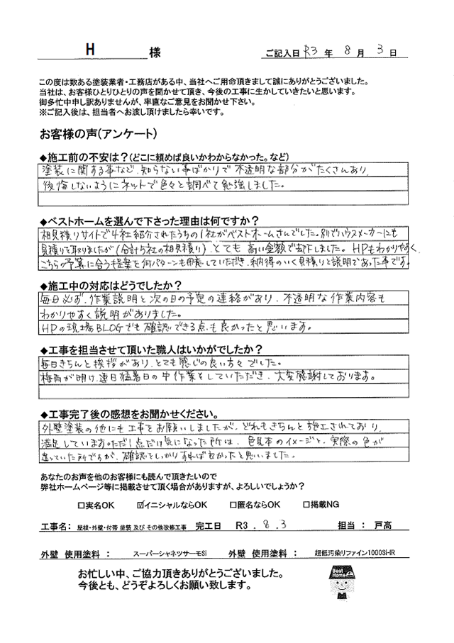 | 保証(ベストホーム) | 屋根3年 外壁3年 |