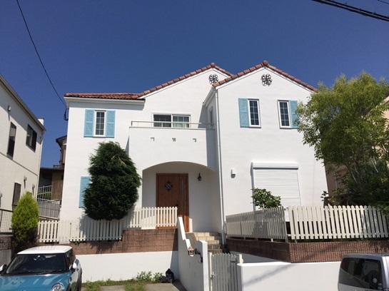 純白ほど強くなく、温かみを感じさせる控えめな白なので、穏やかなイメージの建物にフィットします。光に当たるとハッキリ白がでてくるため、西洋風でおしゃれな印象を受けます。