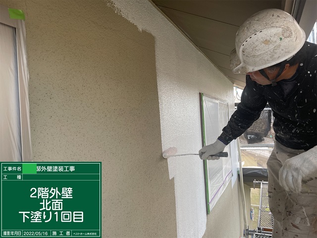 ベストホームでは屋根外壁共に下塗り2回施工を基準としており、下塗り材の吸い込みがなくなるまで下塗り作業を行っています。