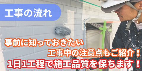 ・上塗り作業終了後に養生を外すので、上塗り作業以降は作業時間外であれば窓の開け閉めが可能です。