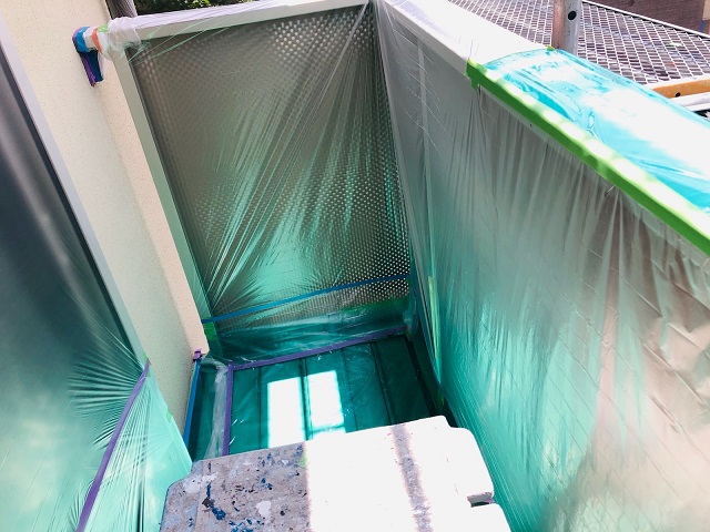 未塗装部分に塗料が侵入しない様、ビニールシートや養生テープで保護します。