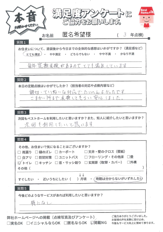 本日は小倉南区上吉田にて3年点検に伺い、美観は維持できているか、劣化箇所や補修が必要な箇所はないか確認しました!点検結果、お客様からの声をぜひご参考ください。