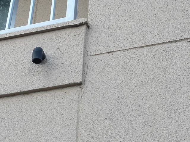 8年経つので経年劣化しておりますが、チョーキング現象は起きておりませんので塗膜に問題はございません。一部ひび割れが発生しておりますので、簡易補修をしておいた方が良いと思われます。