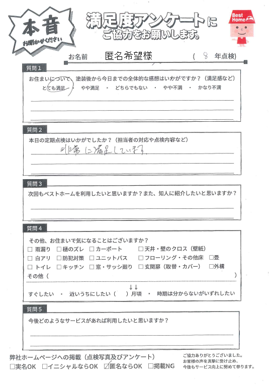本日は戸畑区沖台にて8年点検に伺い、美観は維持できているか、劣化箇所や補修が必要な箇所はないか確認しました!点検結果、お客様からの声をぜひご参考ください。