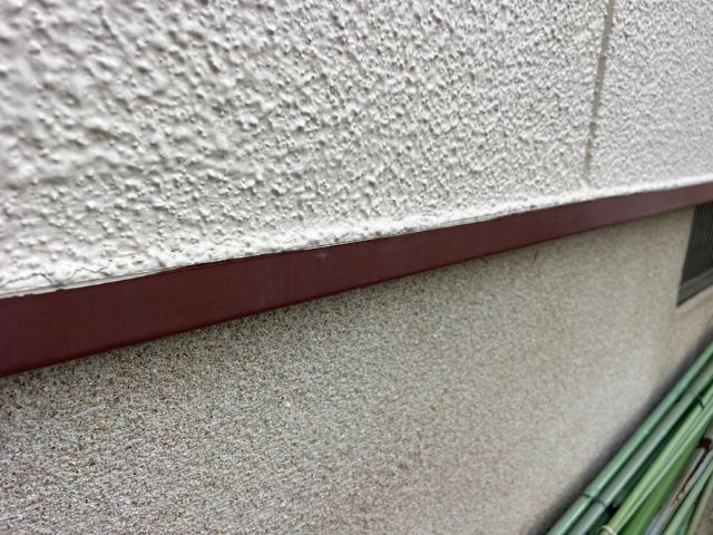 水切り:塗装時のままきれいに保たれていました!水切りを塗装することによって、雨水や土台の腐食、シロアリの発生を防ぐことができます。お住まいの大切な土台を塗装で守っています!