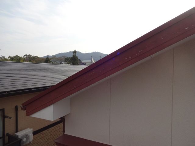 破風:屋根や外壁と比べると材質が違うため耐久年数は低いですが、塗装時のまま綺麗に保たれていました!剥がれもなく良好です!
