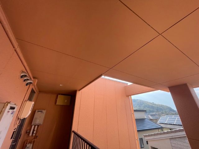 軒天:塗装時のままきれいに保たれていました!基礎を塗装することによってコンクリートの中性化を防ぐ事ができます!
