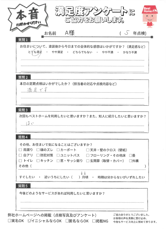 本日は下関市王司本町にて5年点検に伺い、美観は維持できているか、劣化箇所や補修が必要な箇所はないか確認しました!点検結果、お客様からの声をぜひご参考ください。