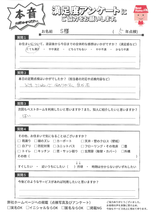 本日は嘉穂郡桂川町豆田にて5年点検に伺い、美観は維持できているか、劣化箇所や補修が必要な箇所はないか確認しました!点検結果、お客様からの声をぜひご参考ください。