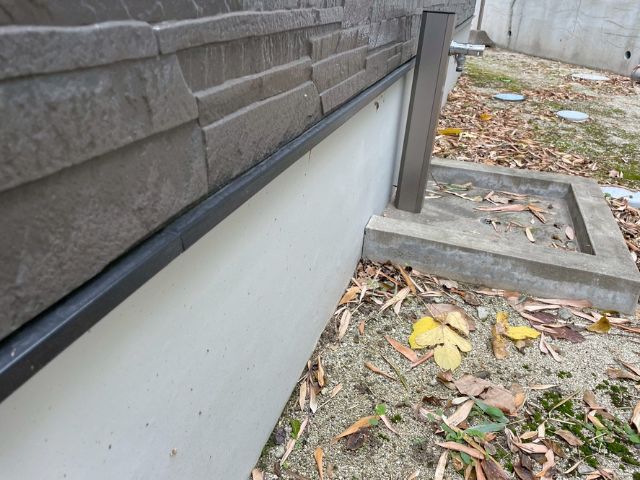 水切り:塗装時のままきれいに保たれていました!水切りを塗装することによって、雨水や土台の腐食、シロアリの発生を防ぐことができます。お住まいの大切な土台を塗装で守っています!