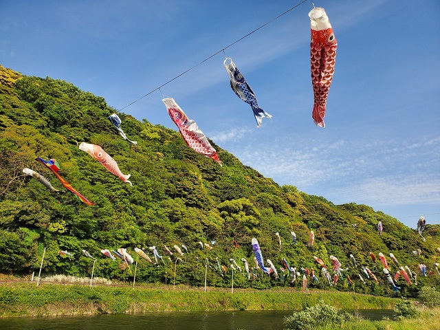 このこいのぼりたちは近くの自治体の方々が、各家庭から使わなくなった鯉のぼりを集め、