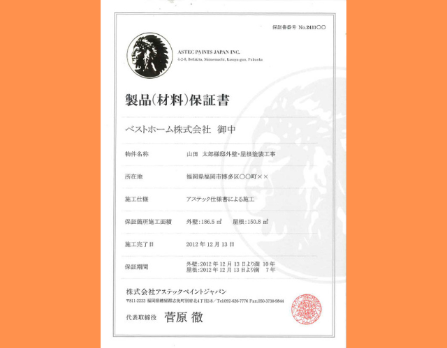 弊社ではその中でもより安心して頂けるように、『メーカー製品保証』がある塗料をまず大前提とし、