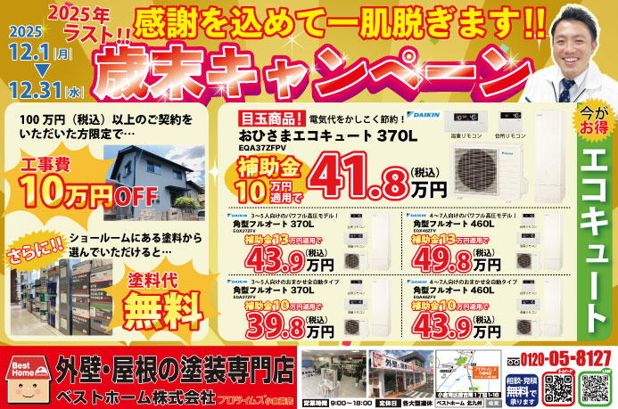 【2025年ラスト!】感謝を込めて一肌脱ぎます!歳末キャンペーン【12/1(月)~31(水)】 - ベストホーム株式会社