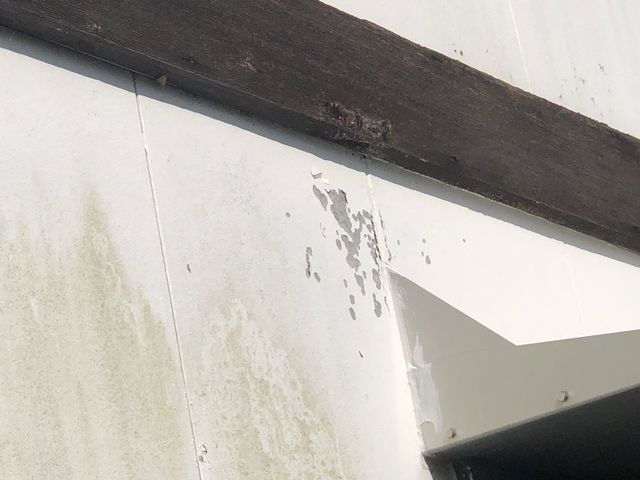 お客様の目に入りやすい症状です。外壁の表面が水っぽくなることで生えます。とくに北面は日当たりが悪く湿気も溜まりやすいため、水気が出やすくなってカビ・コケ・藻の発生率が高くなるでしょう。